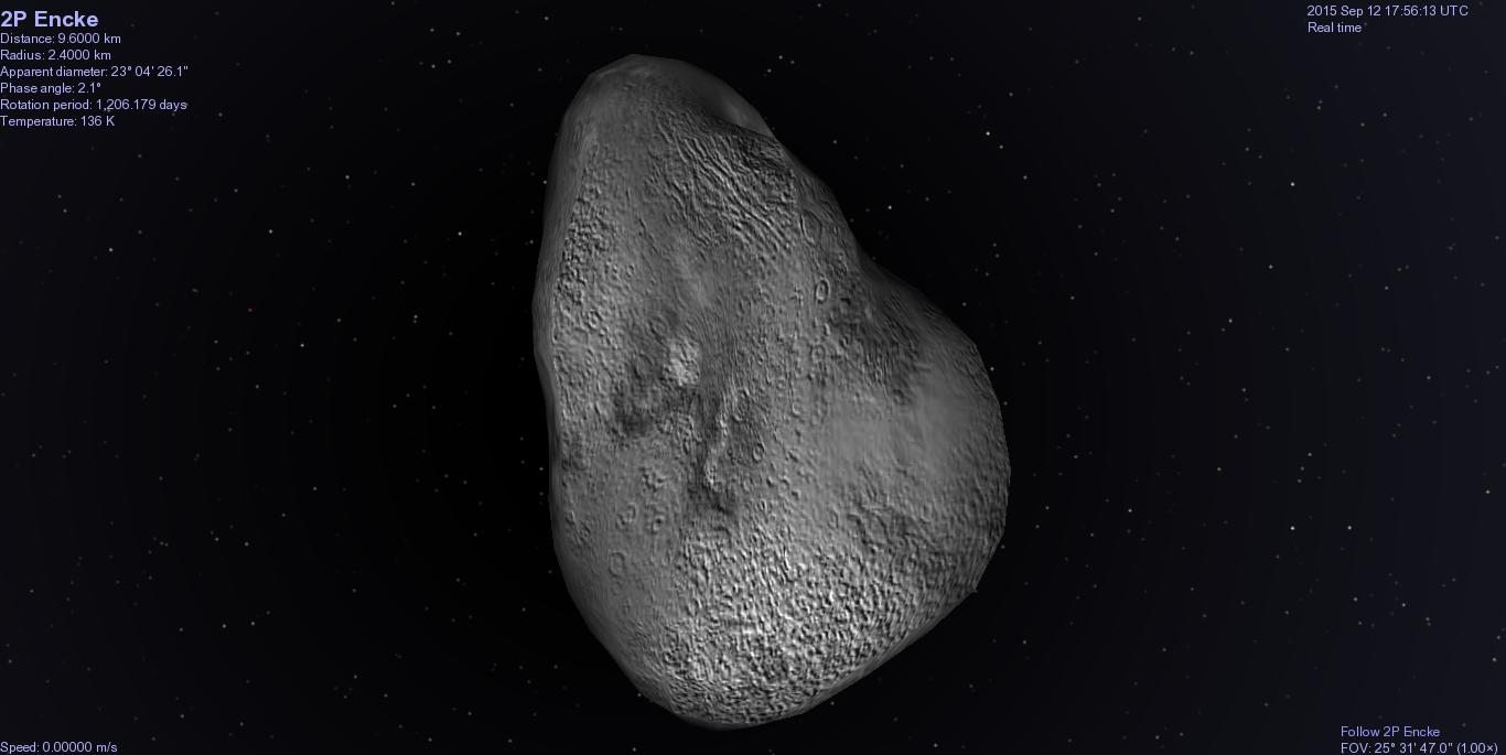 El cometa Encke (2P/Encke) es un cometa periódico con un período orbital de 3.3 años, el más corto entre los cometas brillantes. Descubierto por Pierre Méchain en 1786, fue identificado como periódico en 1819 por Johann Franz Encke, quien calculó su órbita y lo vinculó con observaciones previas. Su núcleo mide 4.8 km y tiene un albedo bajo, reflejando solo 4.6% de la luz solar. Fue el segundo cometa periódico reconocido después del Halley. Encke realizó complejos cálculos para demostrar su periodicidad, logrando predecir correctamente su retorno en 1822 y siendo premiado por la Royal Astronomical Society.