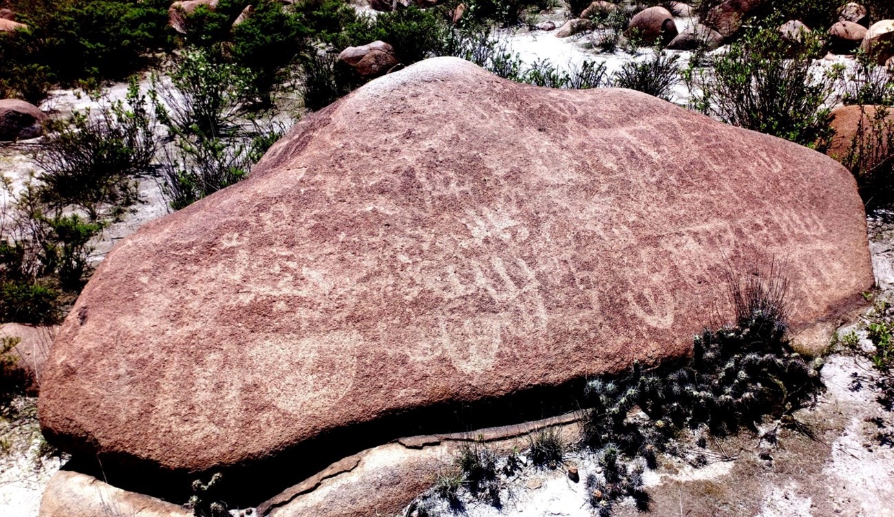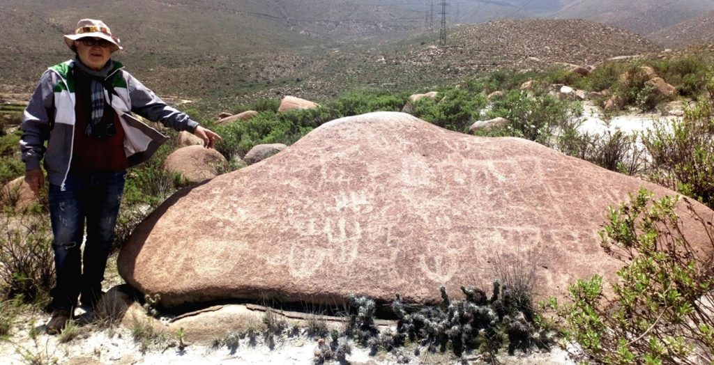En dicha loma, en un terreno de unos cinco mil metros aproximadamente, visitamos más de una veintena de rocas con petroglifos, de las 52 ubicadas en 1992 por el reconocido investigador peruano Eloy Linares Málaga, ya fallecido. Tuve el gusto de conocerlo y entablar gran amistad con él hace más de veinte años, en un Congreso Internacional de Arte Rupestre celebrado en La Habana y, posteriormente, en otro congreso en la ciudad de Cochabamba, Bolivia.