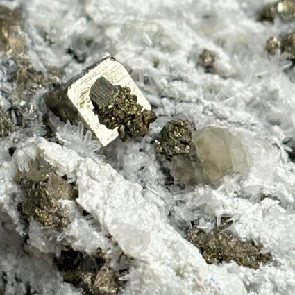 Compuesta principalmente de azufre y hierro, la pirita es uno de los minerales más abundantes de la corteza terrestre. Destaca por su dureza, su estructura cúbica y su capacidad para formar cristales de formas geométricas casi perfectas. Aunque su apariencia puede recordar al oro, presenta un tono más claro, es más dura en términos de resistencia al rayado y, a la vez, más quebradiza, lo que la hace frágil al impacto.