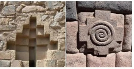 En los Andes encontramos la Chakana, conocida como la cruz andina. Su forma escalonada representa la cosmovisión de los pueblos andinos y la conexión entre los tres niveles del universo: el Hanan Pacha (mundo superior), el Kay Pacha (mundo terrenal) y el Uku Pacha (mundo interior o espiritual). También se relaciona con los cuatro puntos cardinales y simboliza el equilibrio entre el ser humano, la naturaleza y el cosmos.