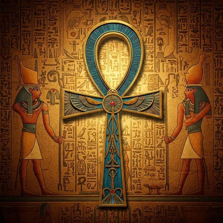 En el antiguo Egipto encontramos el Anj, conocido como la “llave de la vida”. Este símbolo tiene forma de cruz con un lazo ovalado en la parte superior y aparece con frecuencia en esculturas y jeroglíficos egipcios. Representaba la vida eterna, la energía vital y la protección divina. Por ello era utilizado como amuleto y también aparece en manos de los dioses en muchas representaciones, simbolizando el aliento de vida.