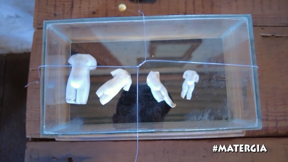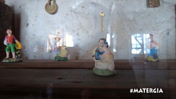 Pero ahí no acabó la revelación. Halló otra figura enterrada en la planta baja; de hecho, cuando la encontró pensó que se trataba de algo dejado u olvidado y que el tiempo había sepultado, pues una loza adyacente al jardín la cubría. Sin embargo, al ir descubriendo las piezas en lugares seleccionados de manera precisa para permanecer ocultas, comprendió que habían sido dejadas adrede para provocar algo. Esta quinta figura luce como una señora de la alta sociedad, obesa y sentada, con un traje azul y elegante.